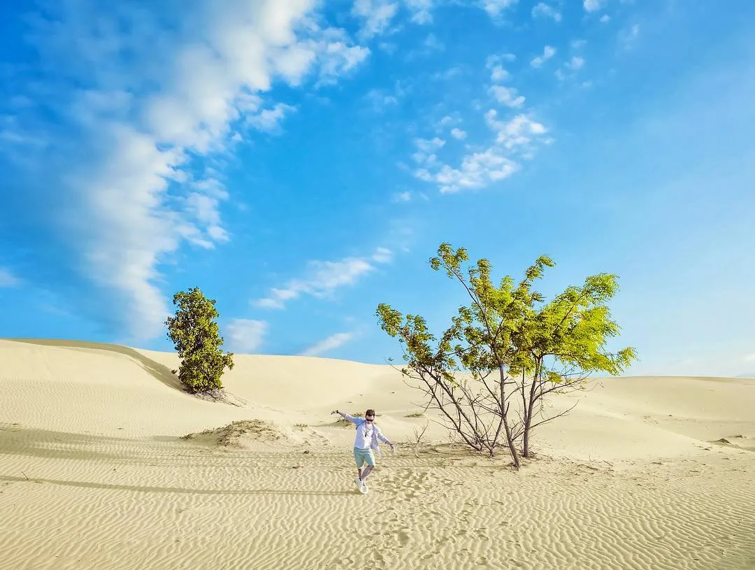Đồi cát Nam Cương là nơi lý tưởng để bạn có những bức ảnh sống ảo đẹp như mơ. Với nền là những đụn cát hoang sơ và bầu trời rộng lớn, bạn chỉ cần diện những trang phục nổi bật và tạo dáng để có một bộ ảnh tuyệt vời. Những trang phục rực rỡ và phụ kiện vintage sẽ giúp bạn có những bức hình lung linh.